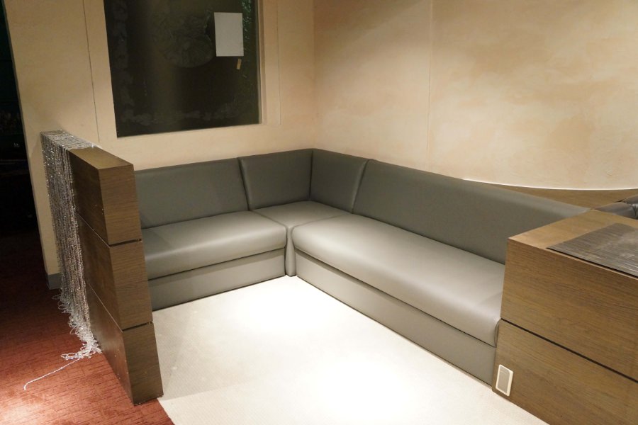 店舗内、室内の演出の一部としてLED発光するソファを開発いたしました。(意匠登録済) LEDがある事で照明としての演出はもちろん、座る場所を目で見て案内できる視認性も兼ね備えております。 座面には座り心地を損なわないように、従来のバネとクッション材で作成されています。 製造は自社で行っているため、寸法変更、張地変更は可能です。