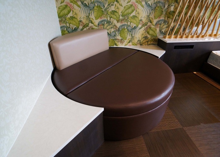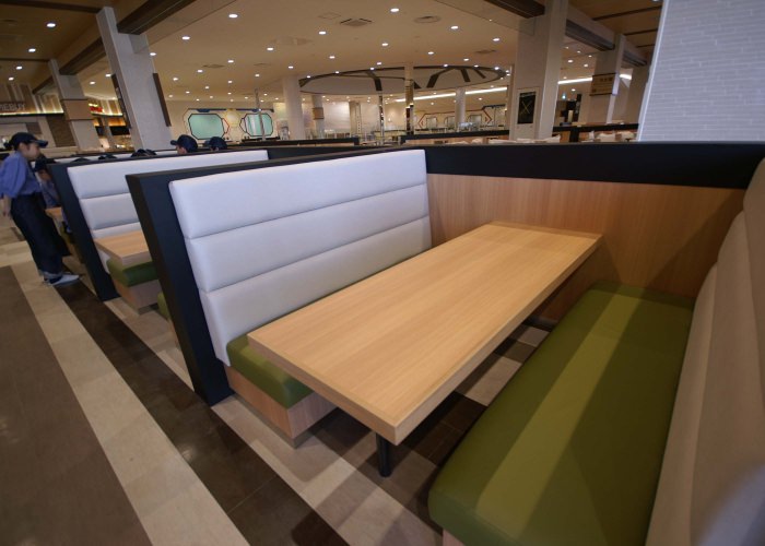 ショッピングモール、飲食店、待合スペースなどにある長椅子も制作しています。 このようなオープンな場所に設置するものは耐久性や汚れにくさなども必要になります。 デザインや張地なども、設置する空間に合わせてご提案させていただきます。